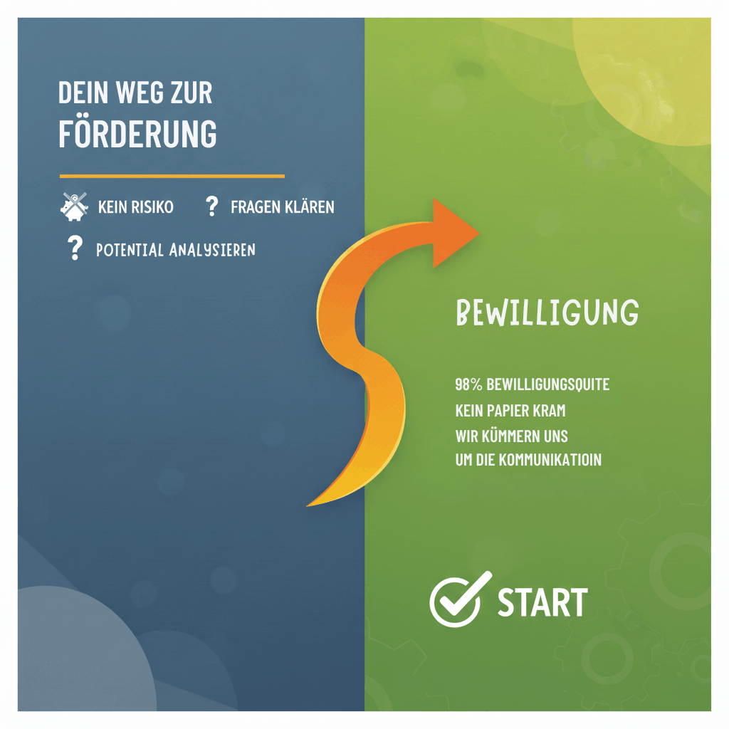 Strukturiert. Förderkonform. Ohne unnötigen Aufwand. Keine Vorlaufkosten.